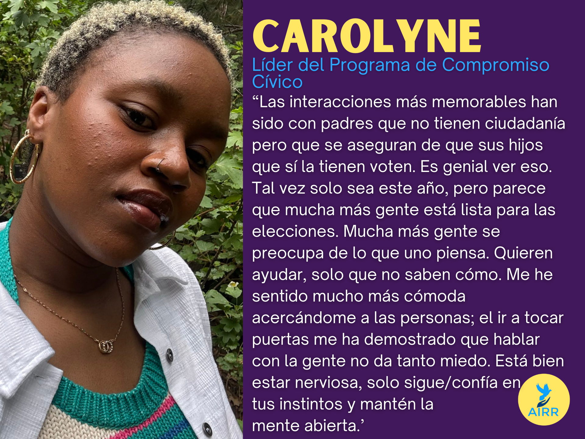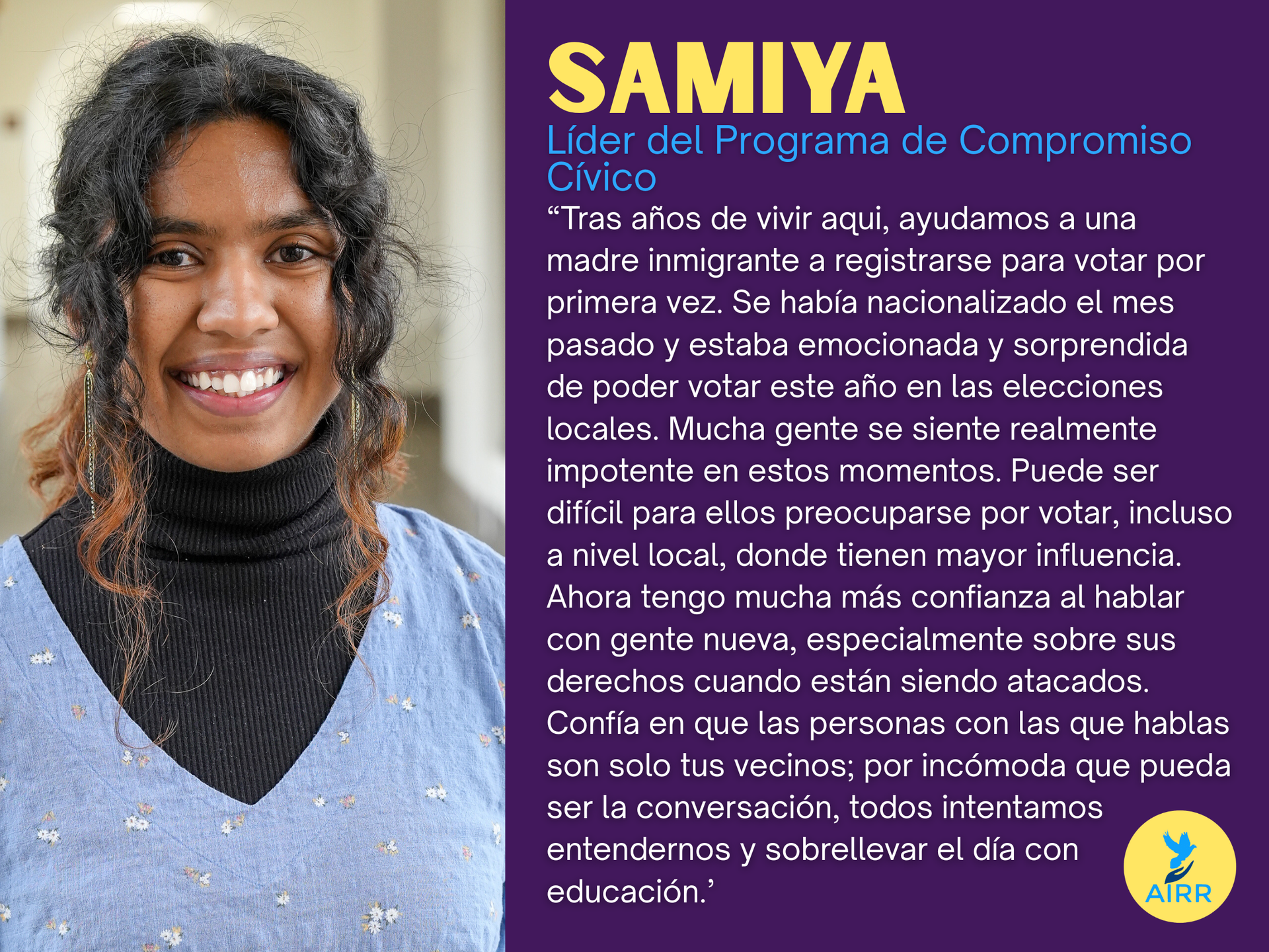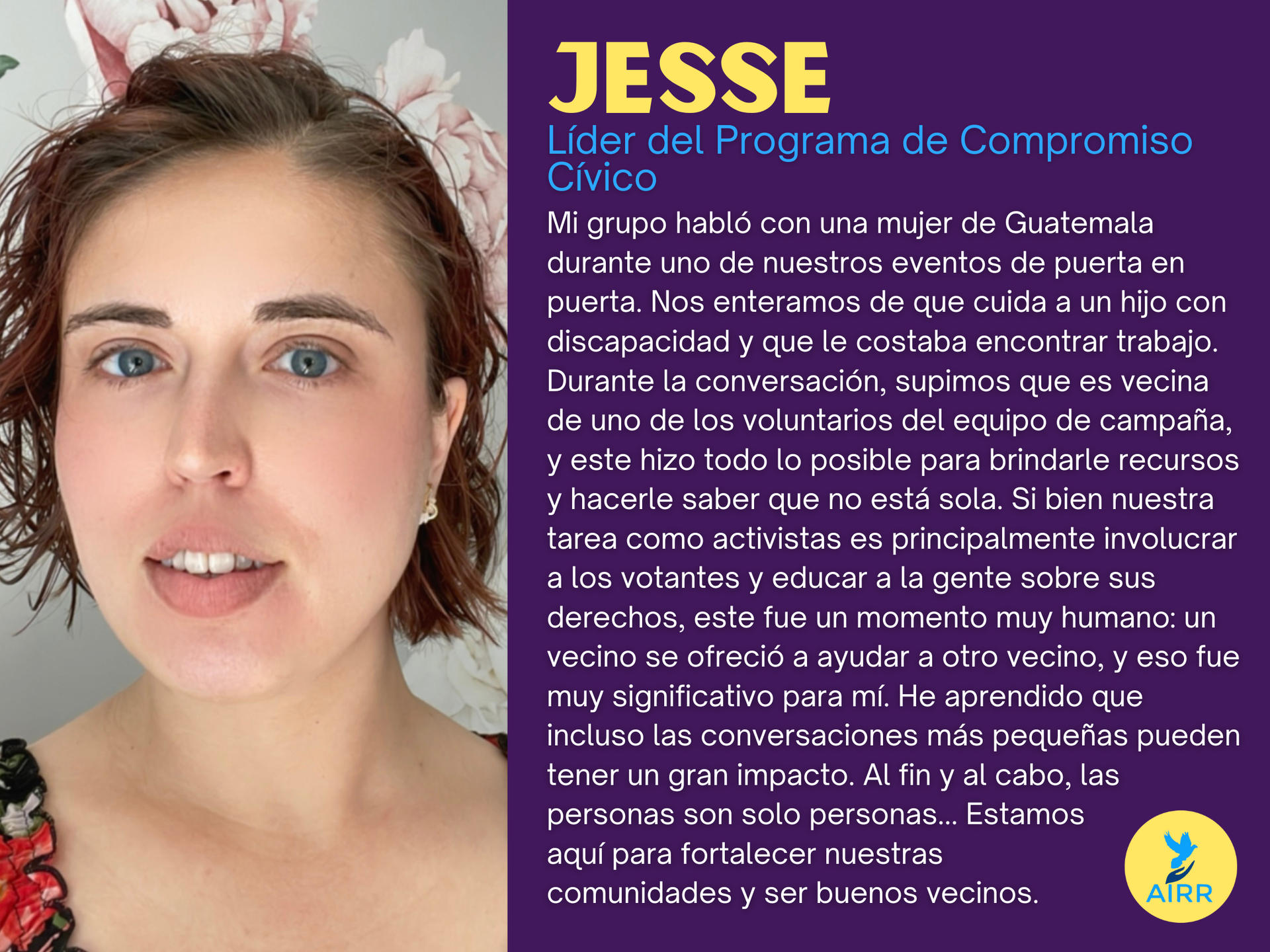 Estos son los participantes seleccionados para nuestro programa de Compromiso Cívico. Nuestro objetivo es apoyar a los miembros de la comunidad para que tomen decisiones informadas y se sientan seguros y empoderados al participar en el proceso democrático.
