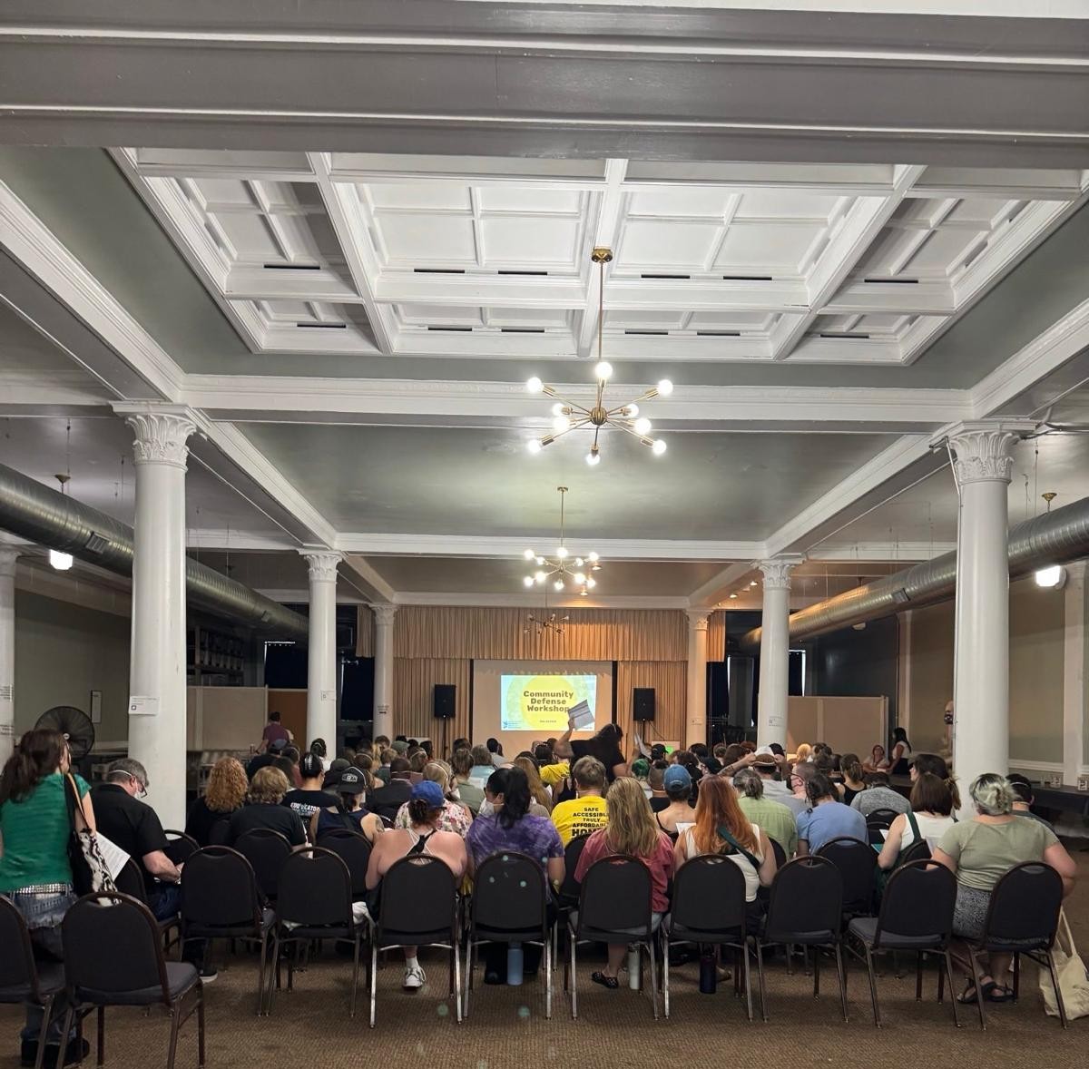 Este trimestre nos encontramos con un servicio necesario. En todo el país y en nuestra propia ciudad, el Servicio de Inmigración y Control de Aduanas (ICE) están tomando como blanco a inmigrantes que asisten a sus audiencias judiciales y coordinando arrestos selectivos de inmigrantes respetuosos de la ley. Hemos observado patrones como el de personas con dos años o menos de residencia en EE. UU. y con Notificaciones de Comparecencia, que son citadas a la Corte de Inmigración, solo para que el Departamento de Seguridad Nacional (DHS) solicite la terminación o desestimación de sus casos, y poco después, las arreste. Este es uno de los ejemplos pero no es la única situación observada. Esto significó que necesitábamos informar a los inmigrantes en las cortes sobre sus derechos y exigir al Departamento de Justicia que tomara responsabilidad. Nos encontramos con numerosas limitaciones y obstáculos, como “políticas de no solicitud”, vigilancia excesiva, la expulsión absurda e ilegal de un abogado de la corte y la expulsión de voluntarios de un estacionamiento. Como resultado de este arduo trabajo incansable, los organizadores han informado que hemos podido evitar arrestos en la corte de inmigración de Kansas City. A lo largo de este trimestre y en el futuro, seguiremos siendo creativos en las formas en que protegemos a nuestra propia comunidad.